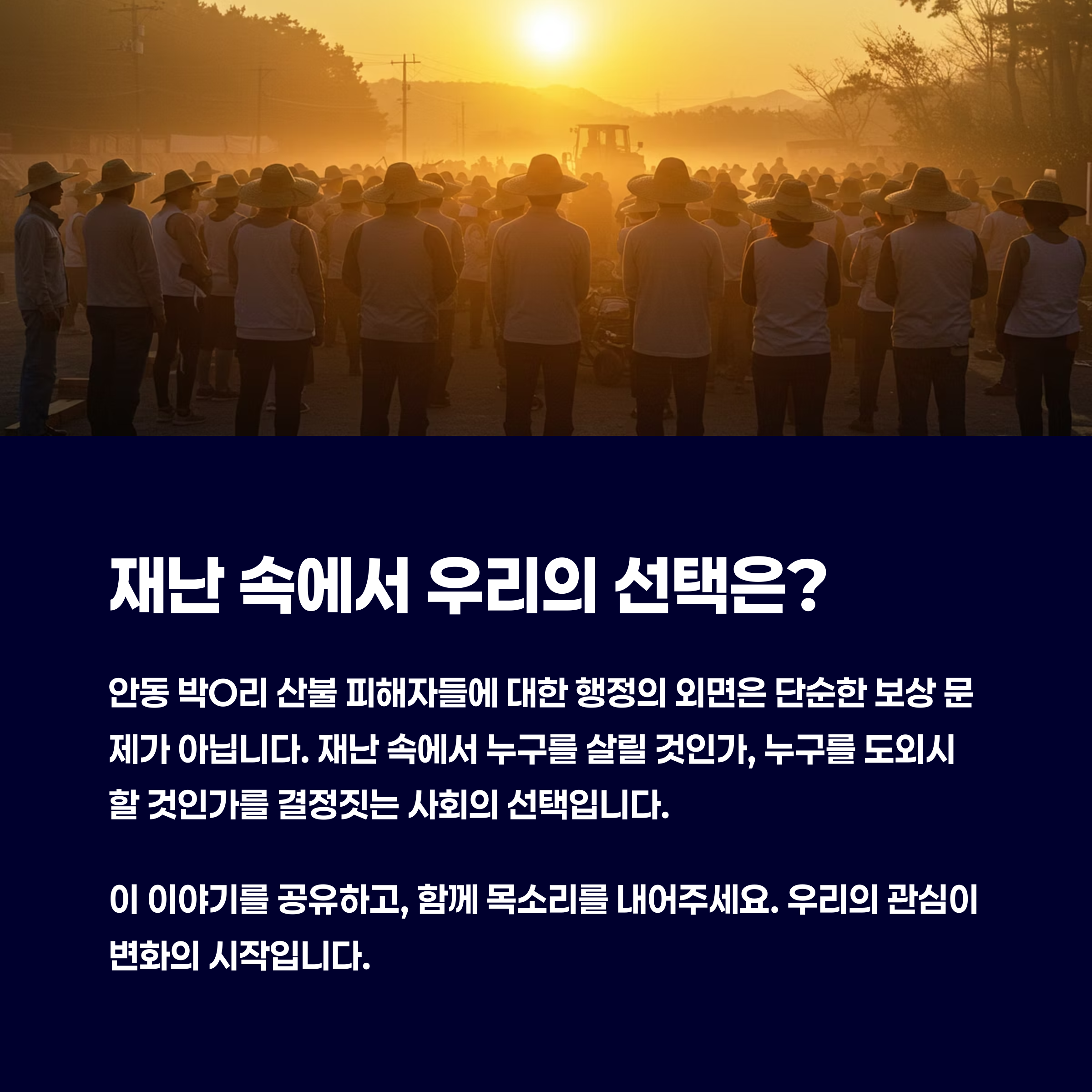 안동 박O리 산불 피해자들에 대한 행정의 외면은, 단순한 보상 문제가 아닙니다.