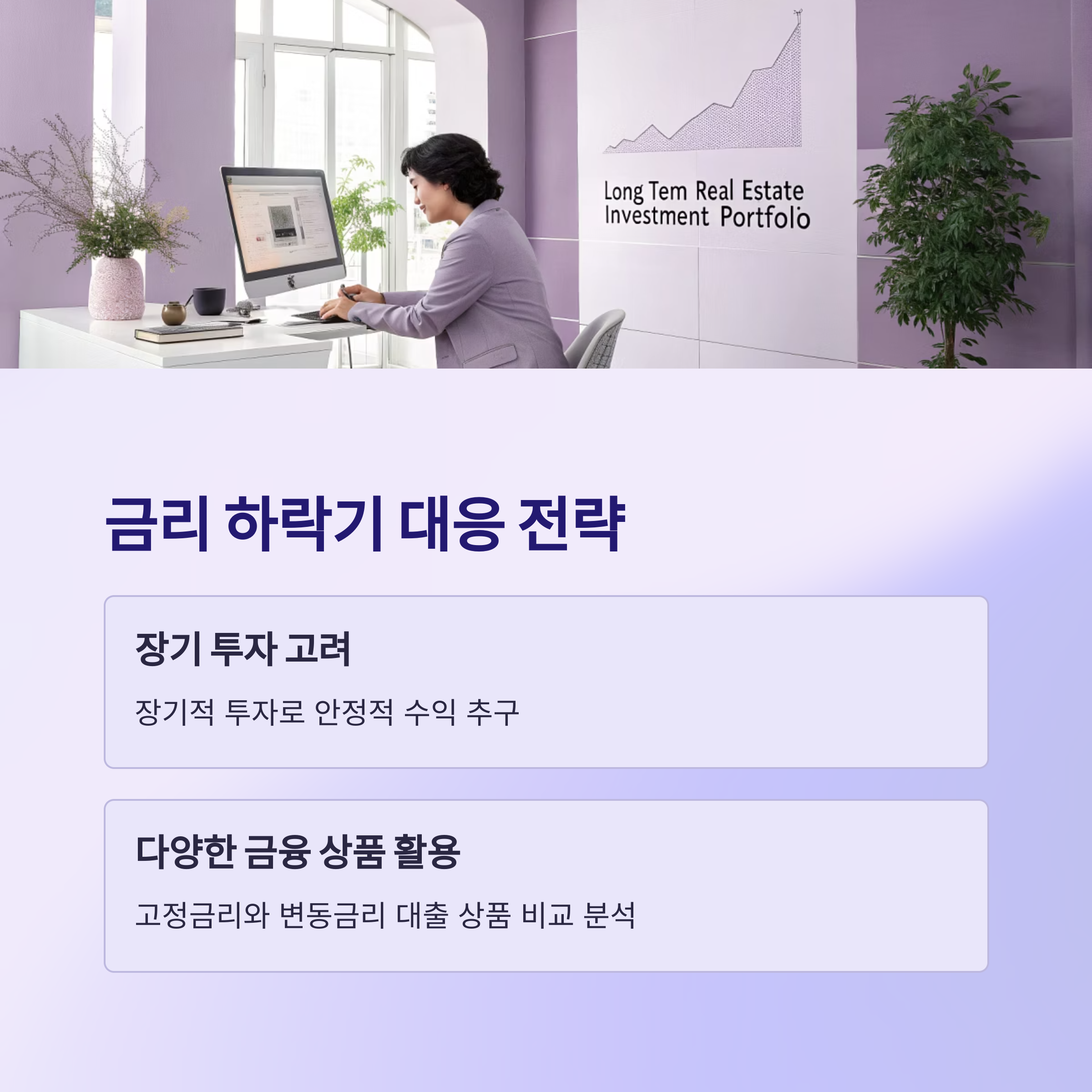 장기 투자 고려: 금리가 낮을 때는 장기적인 투자 전략을 통해 안정적인 수익을 추구하는 것이 좋습니다. 이는 금리 상승의 영향을 상대적으로 덜 받을 수 있습니다.