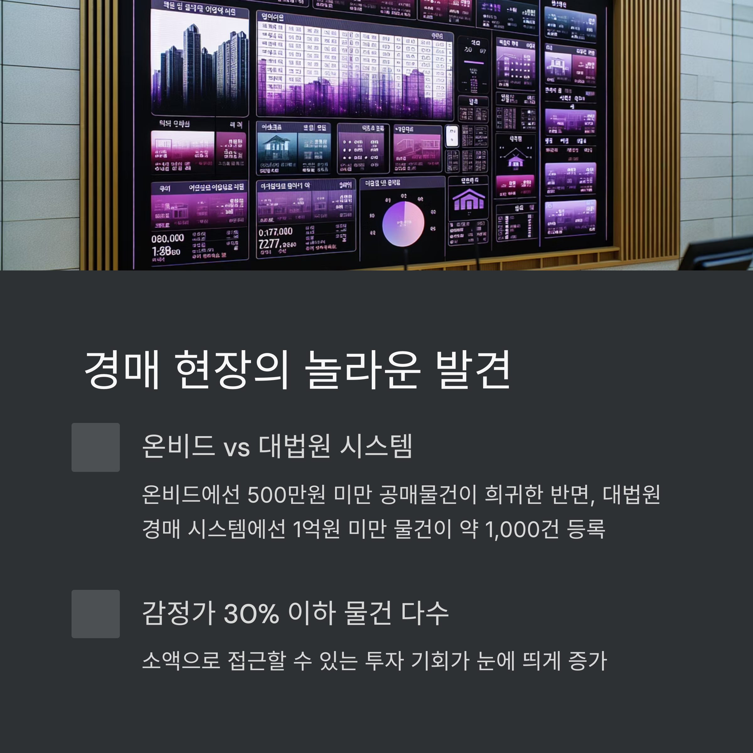 2. 현장에서 느낀 건, 지금 경매시장이 꽤 풍성하다는 점입니다. 특히 소액으로 접근할 수 있는 기회가 눈에 띄게 많아졌습니다.