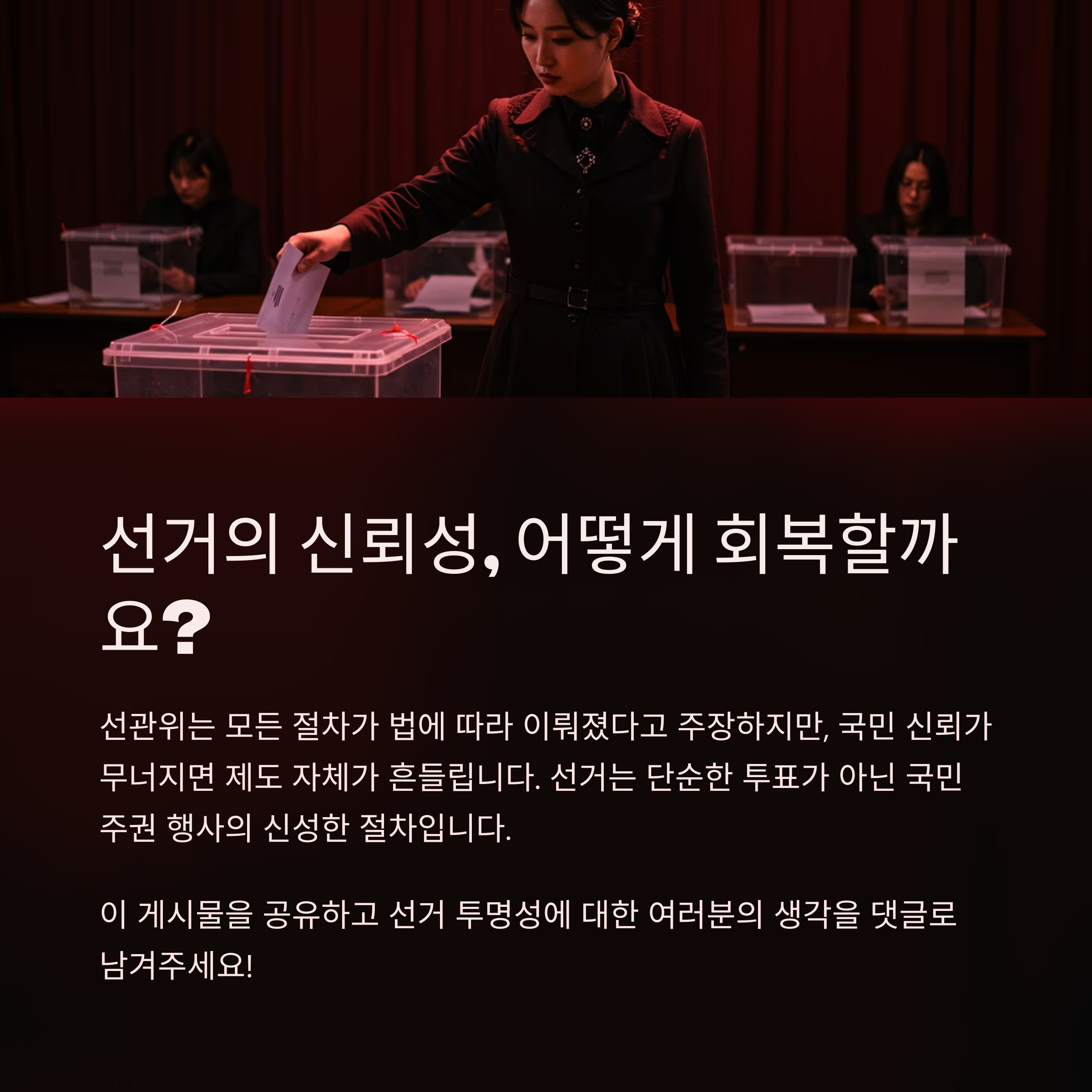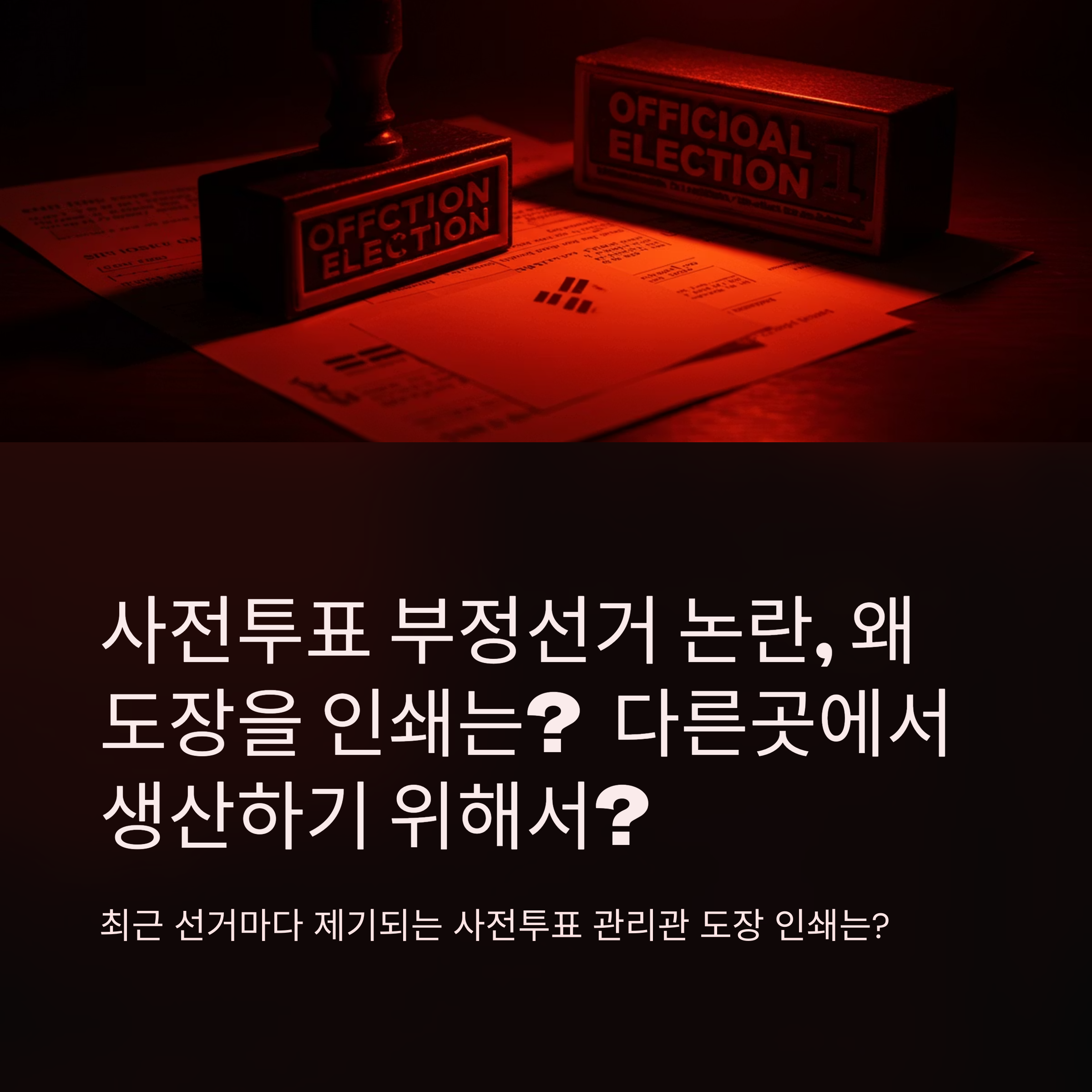 문제는 이 과정이 불투명하거나 조작 가능성이 있는 것처럼 보인다는 점입니다. 인쇄된 도장이 위조에 취약할 수 있고, 실제로 몇몇 선거에서는 봉인지 훼손, 투표함 보관 미흡, CCTV 미작동 등의 사례가 알려져 국민의 불신을 키웠습니다. 수기로 도장을 찍는 당일투표와 비교해 형식적으로도 다른 절차이기 때문에, "왜 굳이 다르게 하느냐"는 의혹이 커지고 있습니다.