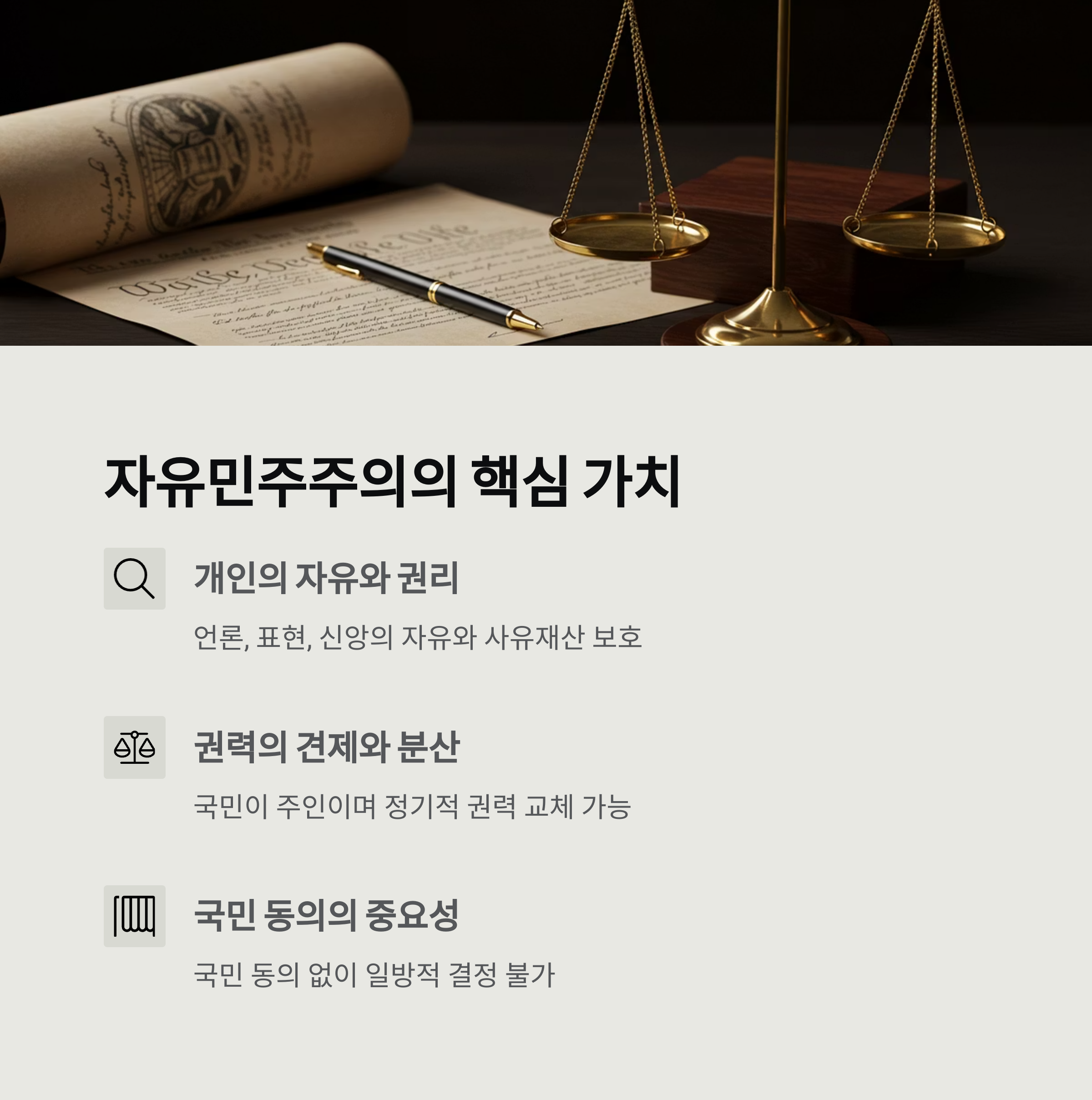 자유민주주의는 소수의 권력자가 마음대로 국정을 운영하는 체제가 아닙니다. 국민 한 사람 한 사람이 나라의 주인이며, 선거는 그 주권을 행사하는 가장 중요한 수단입니다.