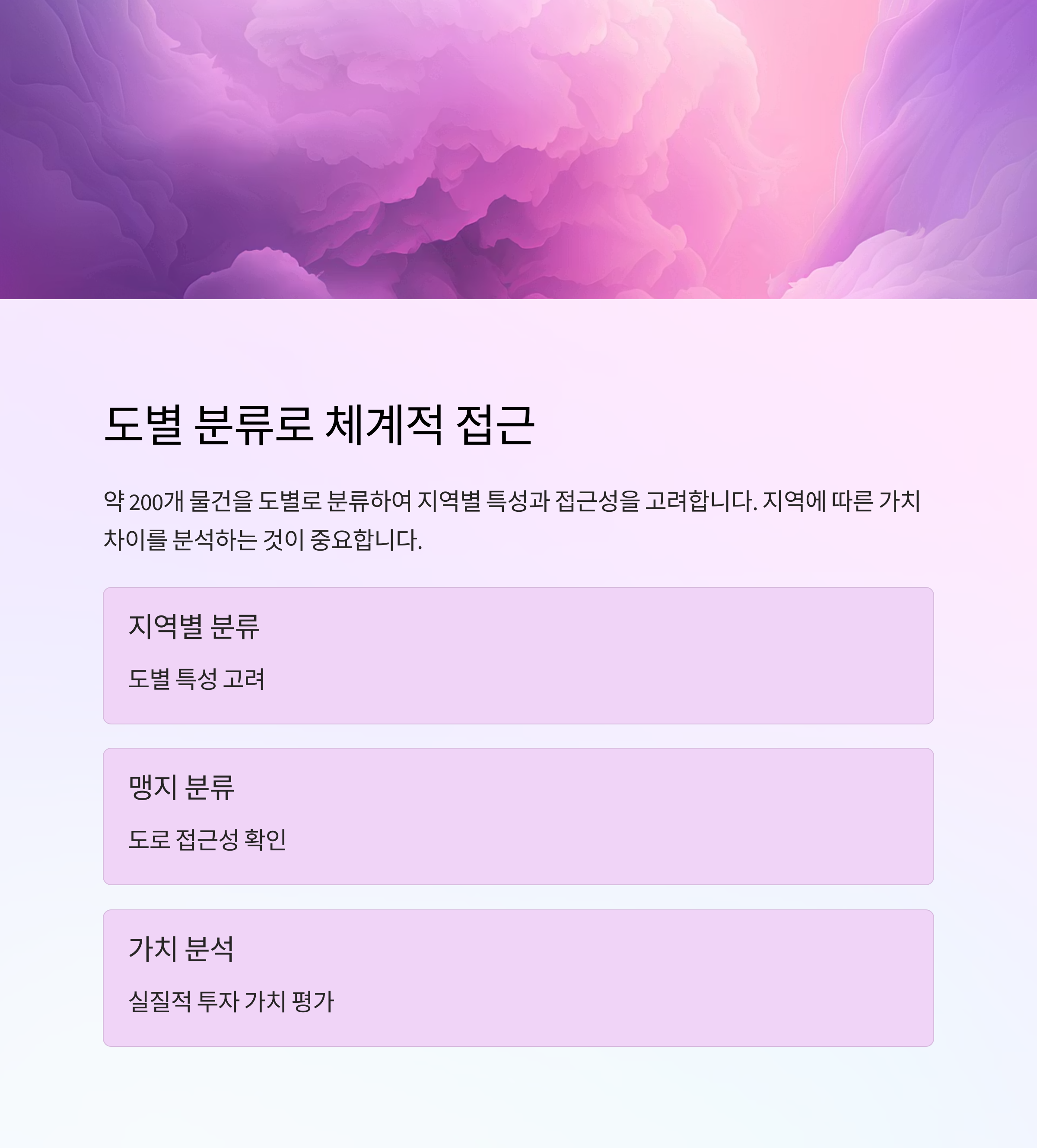 이러한 조건 설정과 분류 과정을 통해 최적의 투자 물건을 선정하는 것이 가장 중요한 단계입니다. 단순히 가격이 저렴하다고 해서 무조건 접근하는 것이 아니라, 현실적인 사용 가능성과 법적 문제까지 검토하는 과정이 필수적입니다.