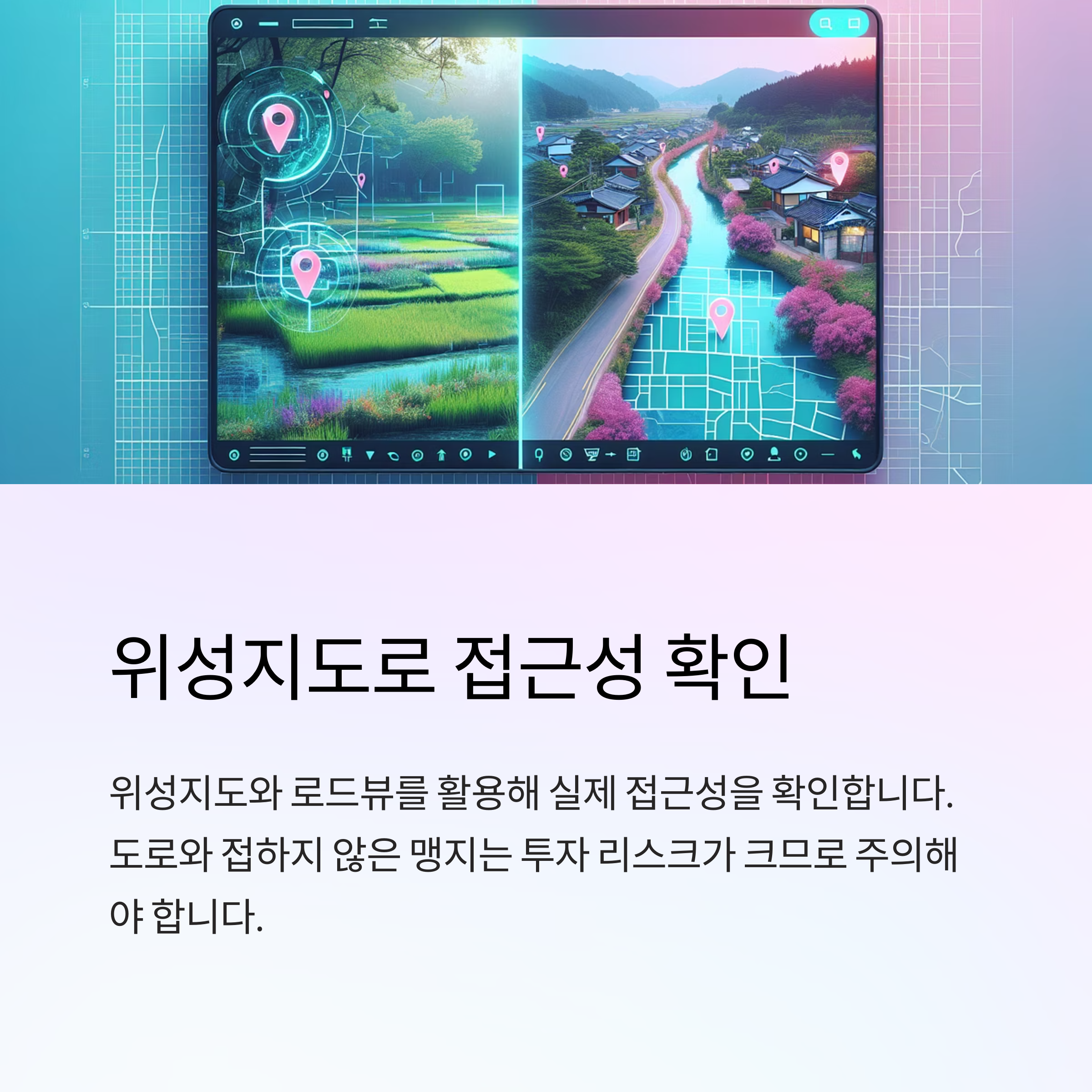 도별로 분류하여 데이터를 체계적으로 정리한 후, 각 물건의 특성에 따라 실질적인 가치 분석을 진행합니다. 특히 맹지(도로와 접하지 않은 땅)는 투자 리스크가 크기 때문에 별도로 분류하여 위성지도와 로드뷰를 통해 접근성을 확인합니다.