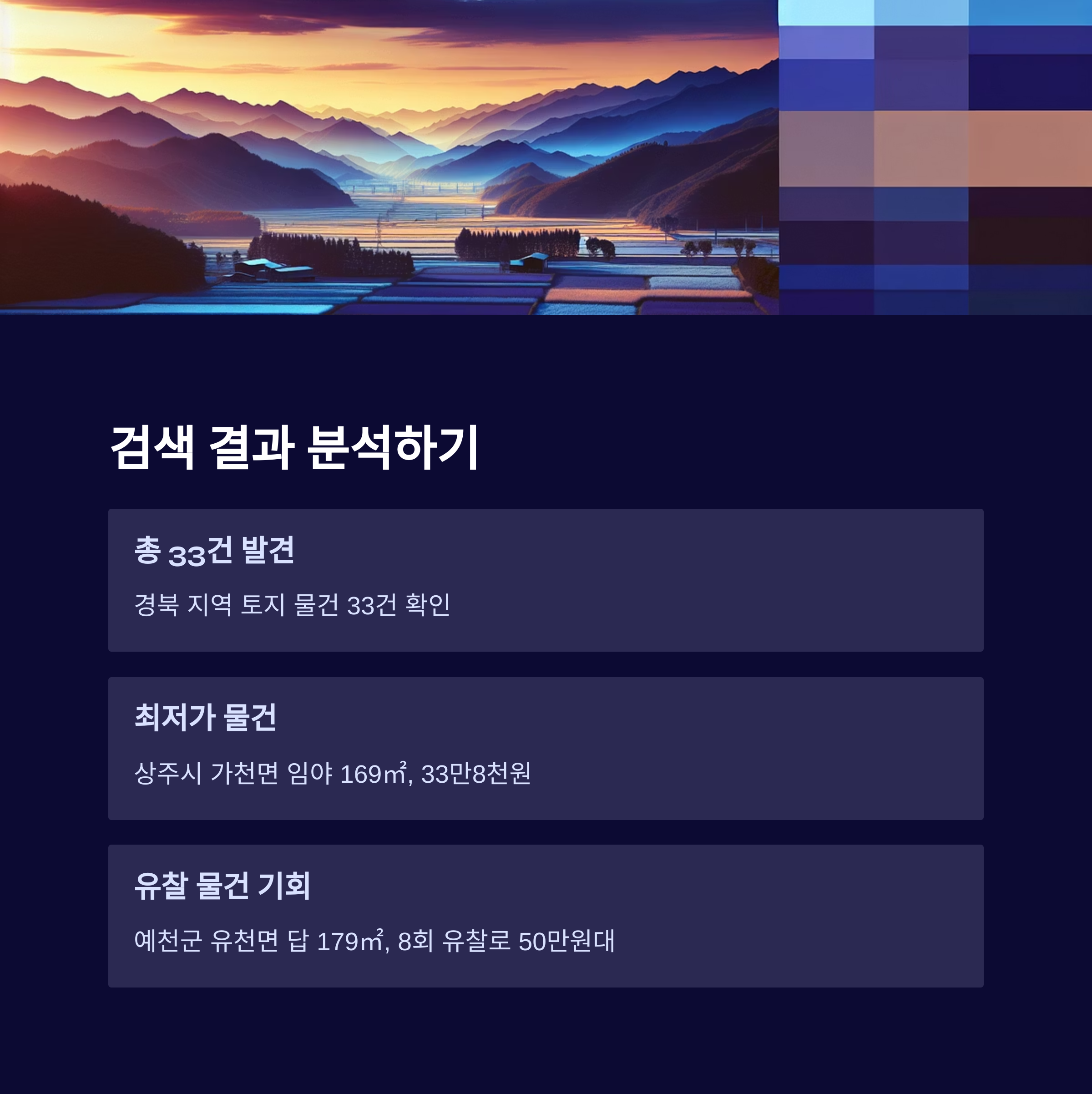 오늘은 온비드에서 예를 경북 지역 토지를 실전으로 어떻게 검색하고 물건을 선별하는지 알려드리겠습니다.