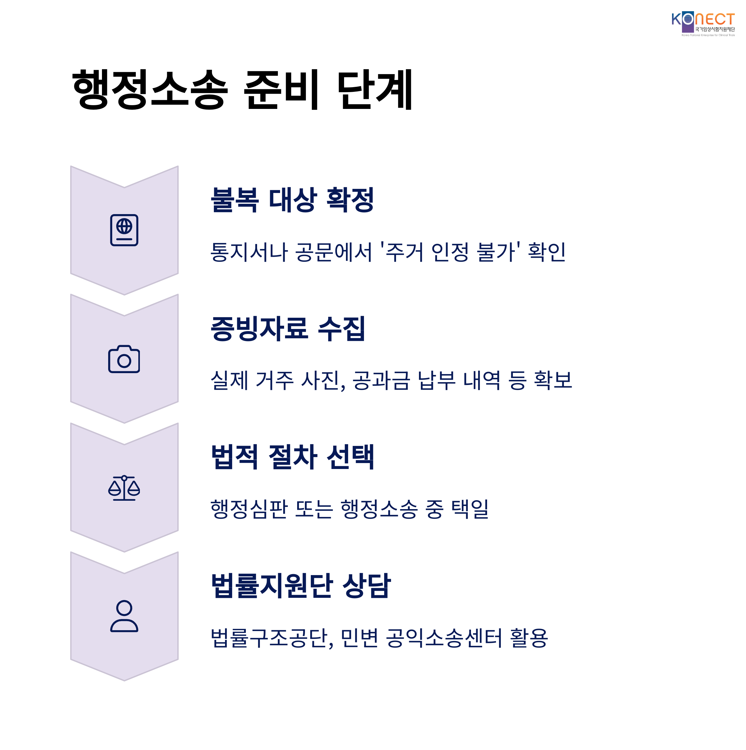이제는 ‘행정 설득’만으로는 충분하지 않다는 사실이 분명해졌습니다. 따라서 다음과 같은 절차로 행정소송을 준비할 필요가 있습니다: