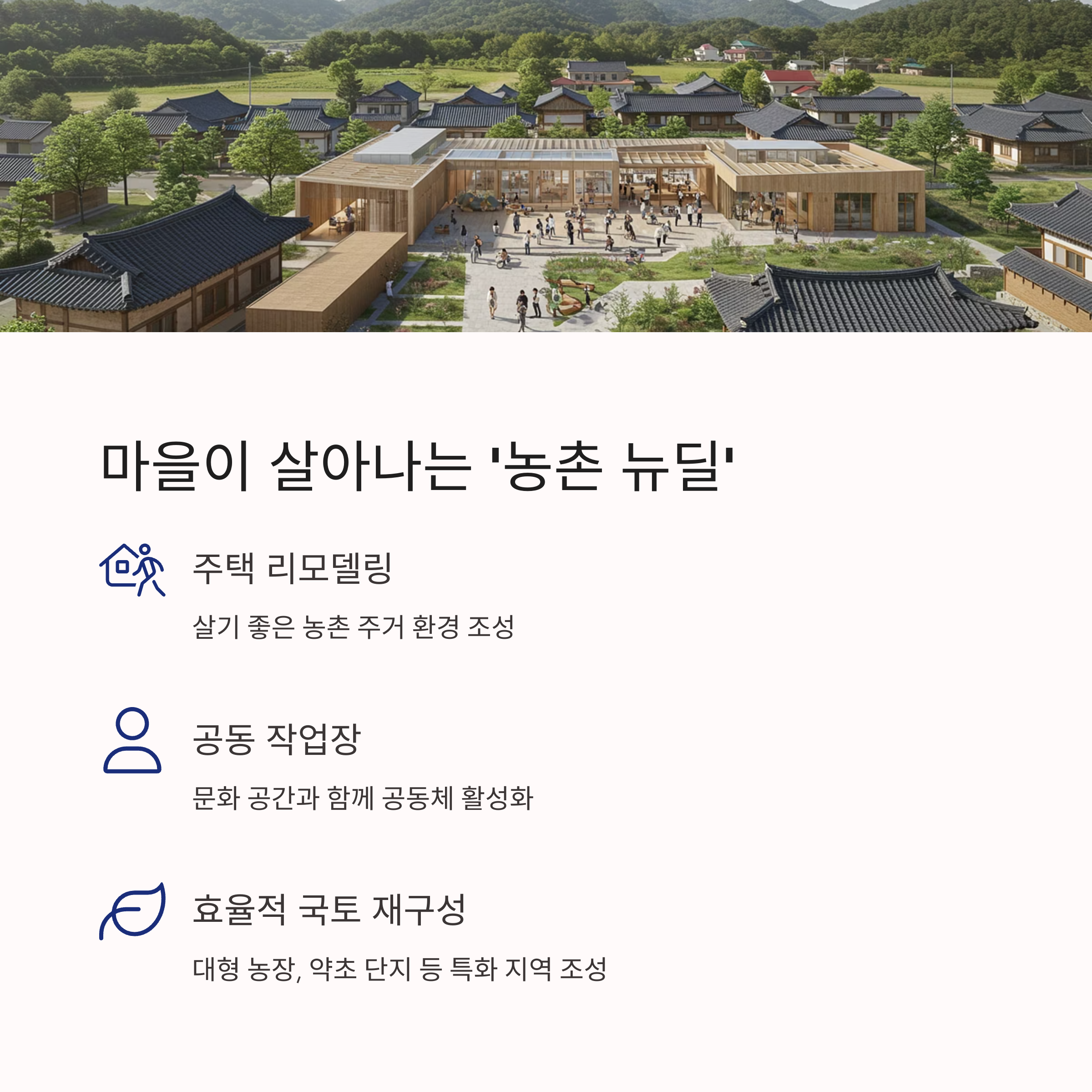 경북은 농업뿐 아니라 주거와 생활 인프라까지 포함한 스마트 농촌 뉴딜 정책을 추진하고 있습니다.